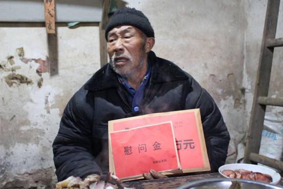 1月19日下午,慰問(wèn)團(tuán)一行在舊州鎮(zhèn)周副鎮(zhèn)長(zhǎng)及仁懷市公安局兩名梁吉健同事的指引下來(lái)到黃平縣舊州鎮(zhèn)槐花村向援疆民警梁吉健家中進(jìn)行慰問(wèn),并將陟翔公司捐助的慰問(wèn)金親自交到梁吉健家人手中,同時(shí),也將遠(yuǎn)在北京的社會(huì)愛(ài)心低人事朱俐安老師捐助給梁吉健家人的慰問(wèn)金(人民幣5000元)一并送上。