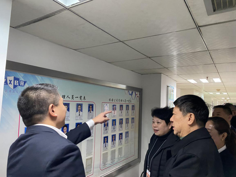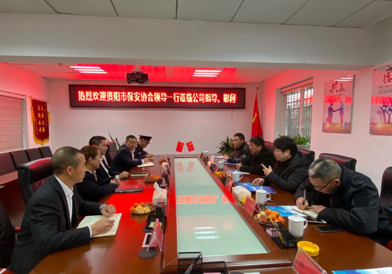 2020年1月17日上午九點(diǎn)十分,貴陽(yáng)市新成立的保安協(xié)會(huì)會(huì)長(zhǎng)劉毅一行到貴州陟翔保安有限公司進(jìn)行指導(dǎo)、慰問(wèn),總公司總經(jīng)理馮波、常務(wù)副總張小慶、黨支部書記李明澤、保安公司一區(qū)域經(jīng)理劉帆及相關(guān)部門同志陪同。
