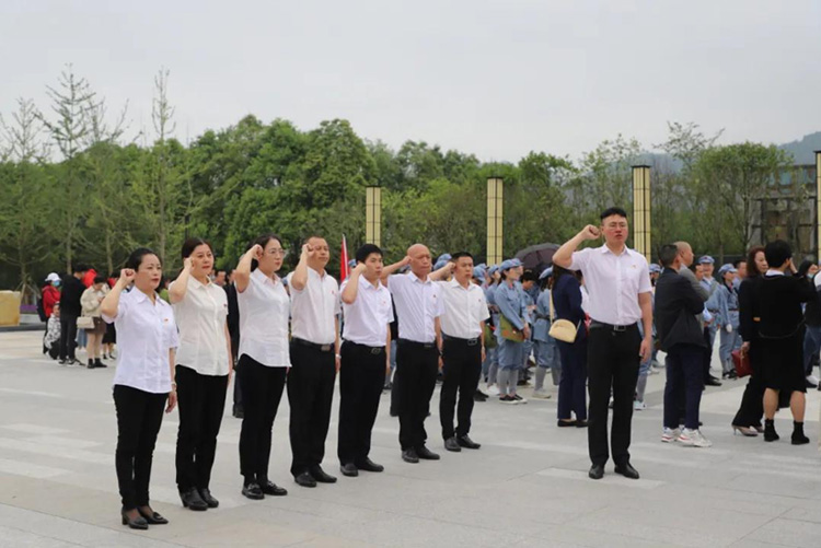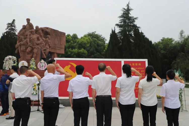 參觀結束后,全體黨員在紀念碑處重溫入黨誓詞,用心感受革命先烈們在這里用熱血做出的斗爭和用生命抒寫的初心和使命。