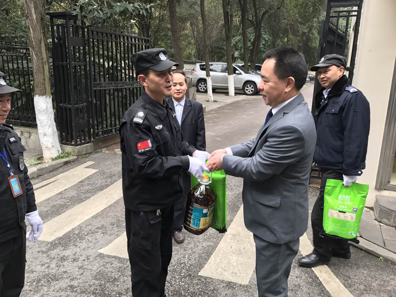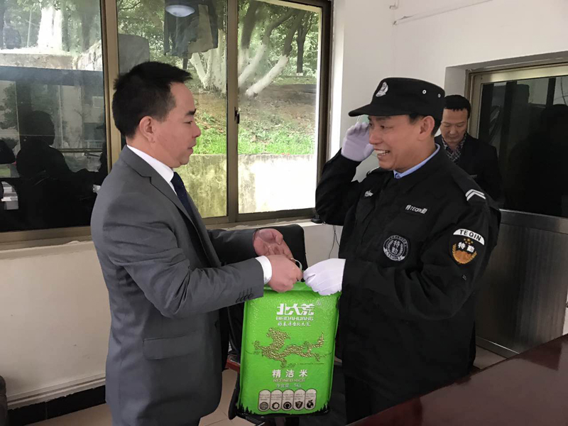 (陟翔集團(tuán)股東代表李鵠為各點(diǎn)保安員送上慰問品)