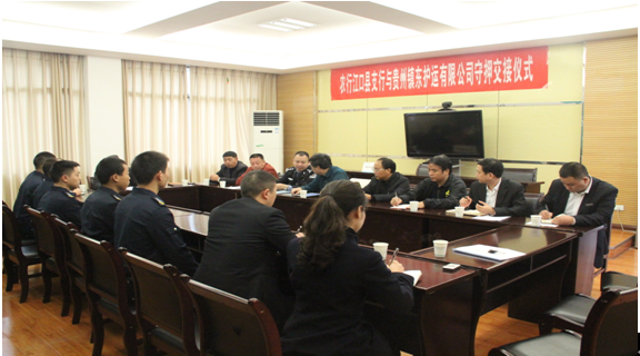 經(jīng)過半年的業(yè)務(wù)對(duì)接和洽談,銅仁本部于11月16日至20日正式接手德江、石阡、印江、江口、松桃五縣農(nóng)業(yè)銀行守押業(yè)務(wù)。銅仁市公安局保安大隊(duì)大隊(duì)長(zhǎng)王世軍、銅仁市農(nóng)行副行長(zhǎng)任達(dá)輝、銅仁市農(nóng)行保衛(wèi)部經(jīng)理?xiàng)蠲、銅仁本部總經(jīng)理陳葉、副總經(jīng)理劉興華、劉樹等出席了五縣守押業(yè)務(wù)交接儀式。